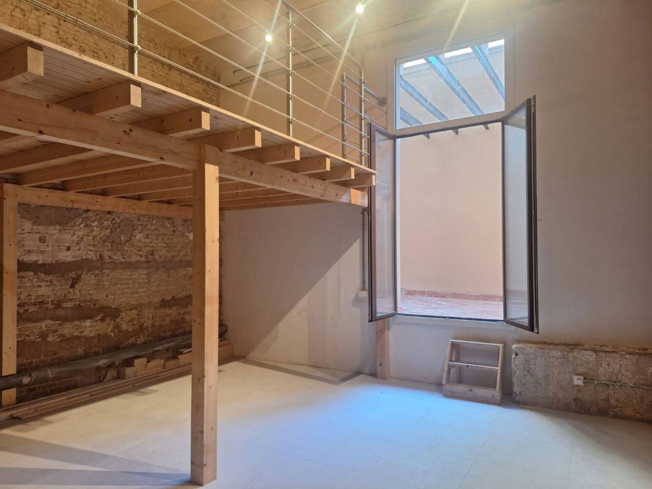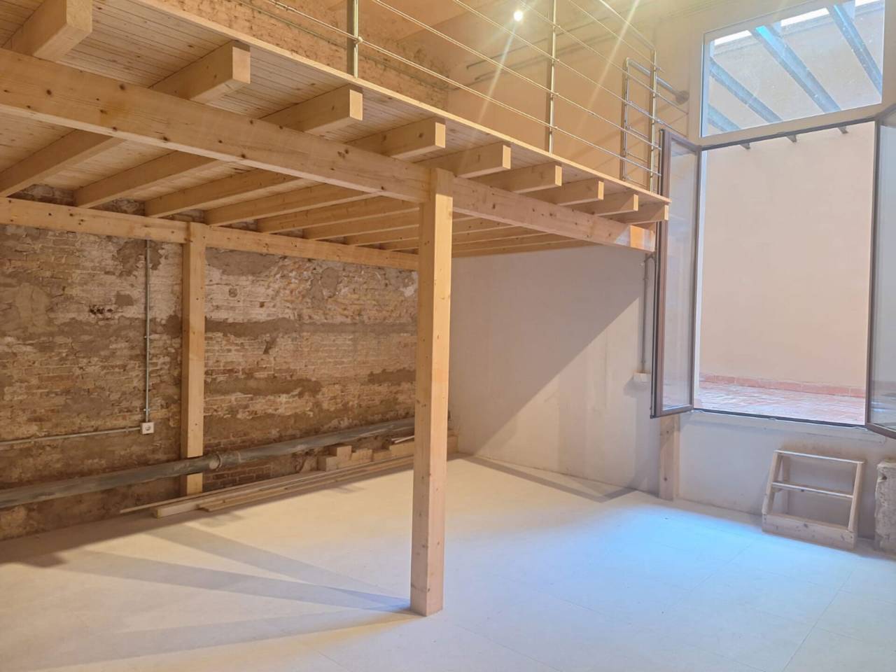 Muy próximo al Mercat de Sant Antoni, en la misma calle Comte Borrell con Manso, encontramos esta fantástica oficina-estudio de unos 60 m² con un patio de unos 18 m². El estudio se ubica en la planta baja, orientado al patio de manzana del edificio, ofreciéndole un toque de privacidad y tranquilidad al mismo. Está completamente reformado. Su distribución interior es completamente diáfana, con salida directa a un patio exclusivo con luz natural, un altillo de unos 16 m² y un baño independiente. Suelos de fibrocemento, paredes de ladrillo visto y tiene una altura de techo de unos 4,50 metros. El estudio forma parte de un edificio centenario completamente rehabilitado con ascensor. Zona muy comercial. Muy bien comunicado mediante transporte público (metro y autobús).