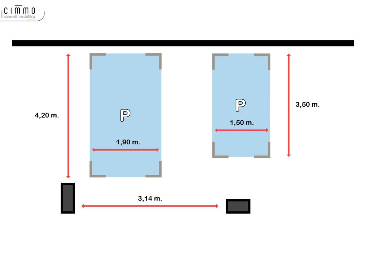 Plaza de parking doble en alquiler (Pedralbes - Les Corts): c/ Doctor August Pi i Sunyer junto c/ Doctor Ferran y c/ Manila. Las plazas están situadas una al lado de la otra, aptas para dos coches (uno grande y otro más pequeño) o un coche grande y una moto (ver plano). La superficie total es de 21,75 m². Las medidas son 4,20 x 1,90 m. y 3,50 x 1,50 m. respectivamente. Buena maniobra. Muy protegidas por columnas. Situada en el sótano -4 (Planta D). Parking con sistema de seguridad. Puerta automática. Finca construida en el año 1980. Ref. V-P001