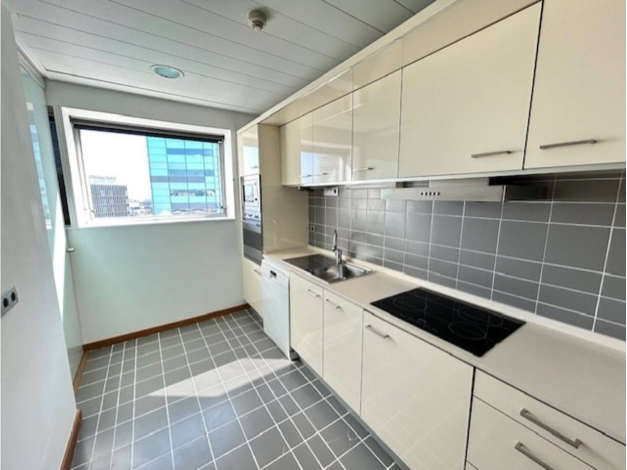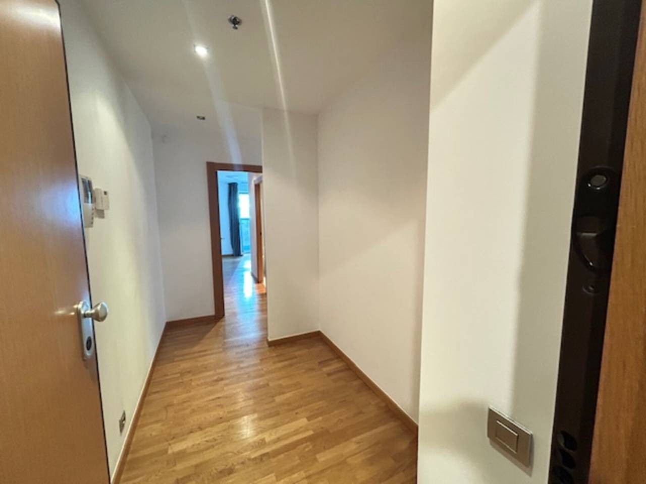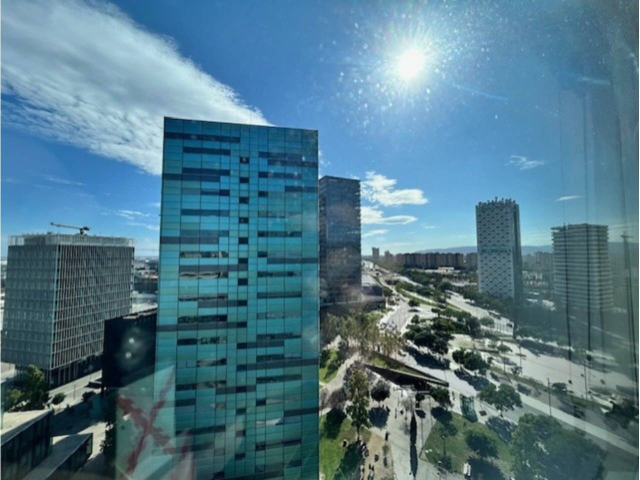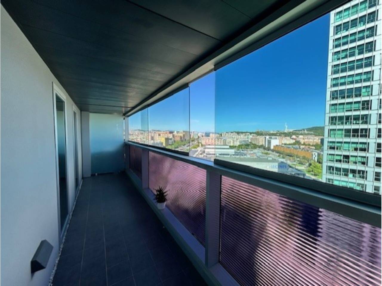 En la misma Plaza Europa, próximo a la Fira II, la Gran Vía Sur, encontramos este magnífico piso de 82 m² con terraza. La vivienda consta de recibidor, salón comedor, cocina totalmente equipada, dos dormitorios (uno de ellos en suite), dos baños completos, y una amplia terraza. Totalmente exterior. Doble orientación Sudeste. Piso alto y muy luminoso. Excelentes vistas. Suelos de parquet, Calefacción y aire acondicionado mediante bomba de calor. Carpintería interior de madera y exterior de PVC. La vivienda se halla en perfecto estado de conservación. La finca es del año 2009 y dispone de cuatro ascensores, video-portero y vigilancia. Se incluye en el precio de venta una plaza de parking para coche grande. Muy bien comunicado mediante transporte público.